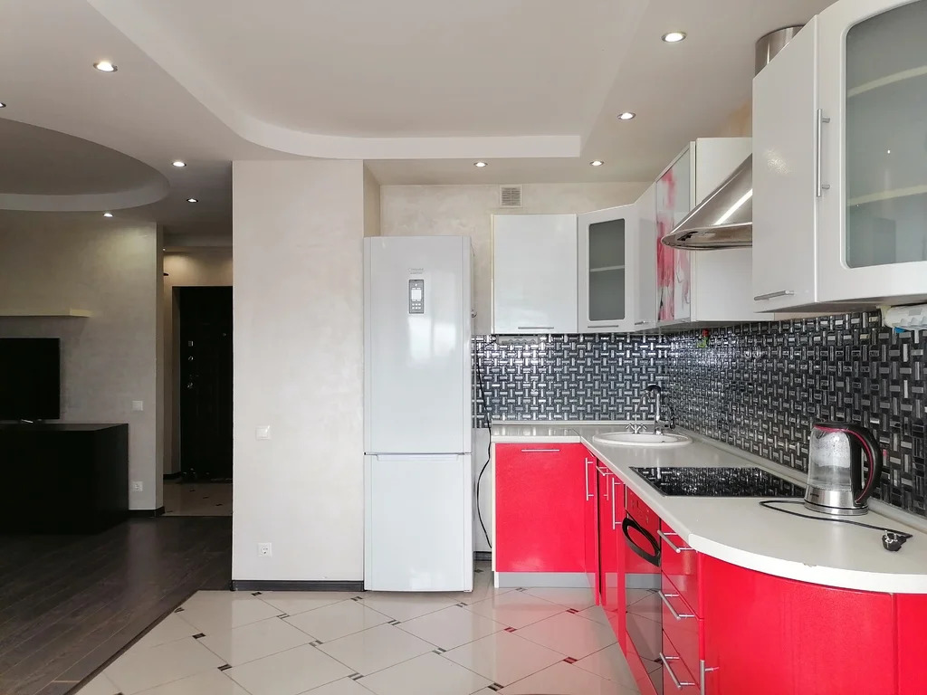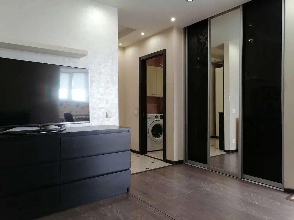 Жилое пространство составляет 18 квадратных метров, кухня занимает приятные 12 квадратных метров, где можно с комфортом готовить и проводить время за обеденным столом. В квартире остается мебель и бытовая техника.