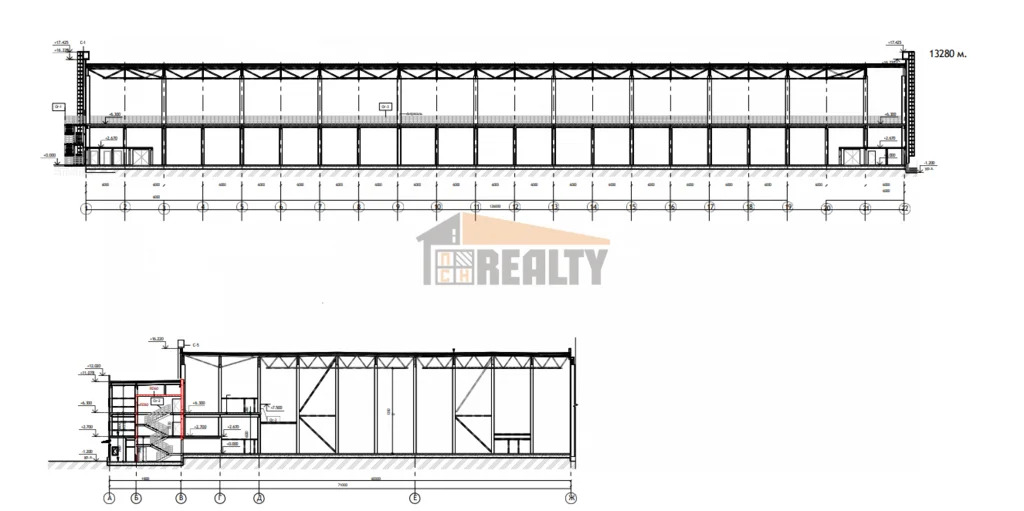 Высота потолка рабочая - 12.5м.
