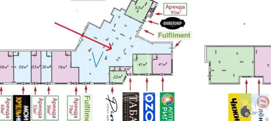 - на фасаде есть место под размещение вывески арендатора